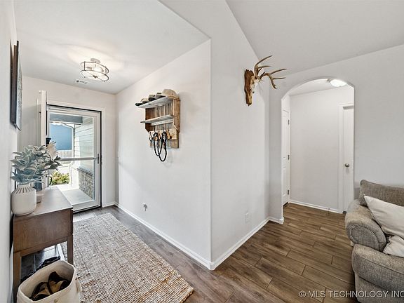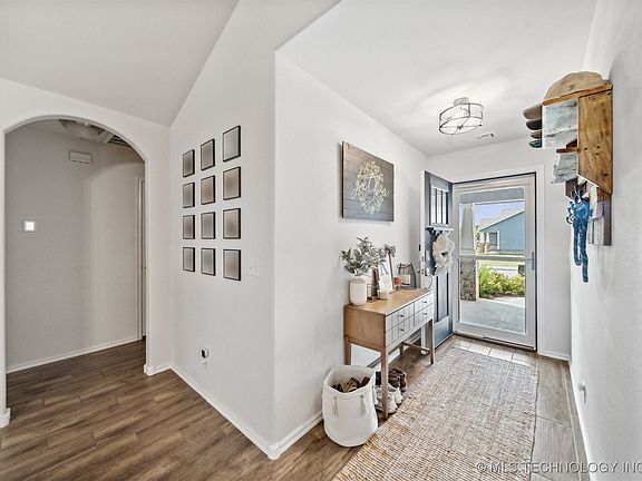 The one you've been waiting for!! This gorgeous 3 bed 2 bath home has upgrades galore including wood-like tile, granite countertops, stainless steel appliances, an air purification system, an extended garage, an extended patio, landscaping, guttering, a full privacy fence and so much more. The highly desirable open concept and split floor plan make this one you don't want to miss. Amenities include a community park, walking trails & extra privacy with no back neighbor. Call this house home before it's too late!!