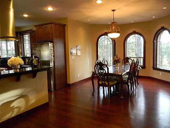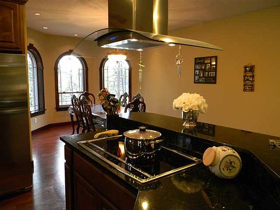 Gorgeous custom built rancher on 5.57 acre treed lot. Great room design is open to kitchen - loaded with upgrades! Slab granite, custom cabinetry & unique architectural details. Fall in love with beautiful wood floors, large fireplace, high ceilings in living & dining rooms, 3+ BD/2.5BA on main flr. Designer light fixtures. Custom staircase to unfinished bsmt with RI 2 BA and RI Sauna. Large garage/shop & 3 oversized decks w/beautiful view! All outbuildings shall be removed prior to closing.