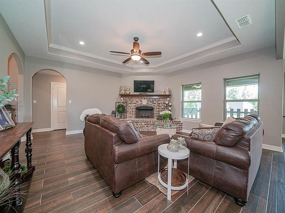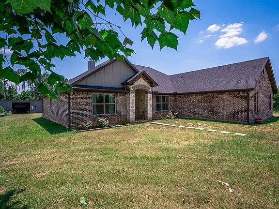 Wow! 4bdrm 2.5bath 2car garage home in Lindale ISD on 5.3 acres! Well-designed! Like new! Spacious living area, wood-look tile throughout, brick fireplace, arched transitions, tray ceilings, & brick accents! Open concept kitchen, granite counters, breakfast bar, pantry, large dining area. Spacious master suite with large bathroom-separate vanities, tub, walk-in shower, & walk-in closet. Bedrooms 2&3 share convenient access to a hall bath with a walk-in shower. Bedroom 4 provides that extra space for family, guests, or office needs. The large metal building with electricity and water offers space for storage & shelter for animals. Great opportunity to enjoy the country life with quick, easy access to town!