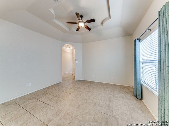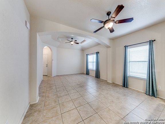 Welcome to your new home!! Beautiful curb appeal greets you into this lovely, well maintained home. Be impressed with this light and bright home that offers a great open floor plan. Striking architectural coffered ceiling in spacious living area gives it an elegant touch. Gather friends and family at the wonderful Kitchen that offers a breakfast bar and island with plenty of cabinets. Master Bedroom has separate shower and tub, double vanity! Tile and laminate flooring, no carpet. Step out to your backyard under the covered porch, plenty of privacy as there are no neighbors in back! Home is located in the sought after Northside ISD & sought after Braun Ridge community. Also close to major highways, shopping and restaurants.