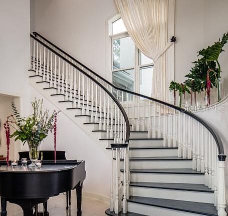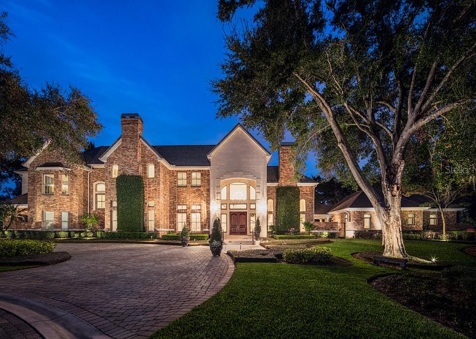 Set along the back nine of Isleworth's renowned championship golf course, this elegant estate delivers stylish interiors and more than 7,800 square feet across the main home and detached guest house. The stunning curved staircase in the foyer creates a grand first impression and is accented by white Venetian plaster walls and a beautiful chandelier. The formal living room features a soaring ceiling with large windows stretching from floor to ceiling, flooding the exquisite space with natural light. Beyond the formal dining room and butler's pantry is the estate's central gathering area comprised of the family room and casual dining area with rich hardwood floors and the recently updated kitchen. With new slate floors, Corian countertops and white cabinetry, the kitchen also features stainless appliances, a center island and bar seating. The main home features five generous bedrooms including the expansive master suite which offers beautiful hardwood floors and a stone fireplace, with plenty of space for seating and fireside relaxation. The detached guest house offers two additional bedrooms along with a comfortable living area, and the private office in the main home can easily be used as an 8th bedroom. Beautiful golf course views provide the backdrop for the fenced grounds featuring a separate covered summer kitchen and a sparkling open-air pool and spa with ample deck space surrounded by manicured landscaping-a delightful venue for year-round enjoyment of Central Florida's warm, tropical climate.