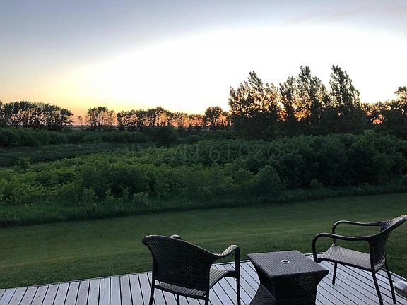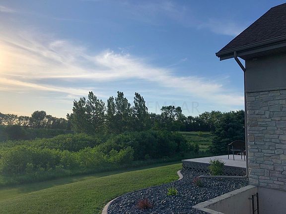 This AMAZING home is situated on a HUGE 1.52 acre river lot at the end of a cul-de-sac. Only one neighbor, but endless views on this rare listing just minutes from Fargo. This home features: 10 ft ceilings on the main floor, custom kitchen with large island and solid counter tops, large great room with stone fireplace, master suite with a large walk-in-closet, private master bath with dual sinks, jetted tub, & a tile shower. Upper level has additional large family room, 3/4 bath and large bedroom. Basement has family room, 2 additional bedroom, full bathroom and lots of storage, huge 40x30 garage is heated with floor drain.
