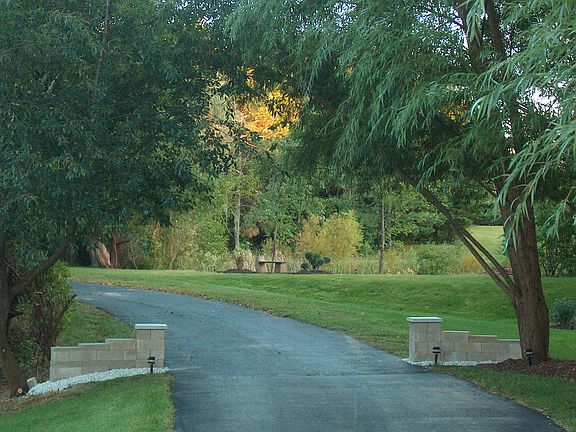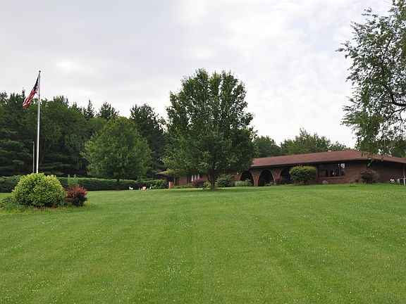 Relax in you own resort, just a few minutes east of town! Private black-topped driveway curves through the woods and leads to a large, all-brick, spacious U-shaped ranch home at the top, with a large courtyard in the middle. This estate includes a private park, mature trees, large wooded areas and trails with camp fire pits located throughout the grounds. 4562 SF finished on ground level, with 1473 SF basement/wine cellar/work shop below which can be easily finished, if desired. Major remodeling includes gourmet kitchen with a large quantity of the highest quality Amish hickory cabinets designed by Creative Kitchens, two Dacor convection ovens, Viking 6-burner cook top, walk-in pantry, tile floors, library with built-in mahogany book cases. Master bedroom occupies the west side of the home and features two separate bathrooms, as well as two walk-in closets. The other three bedrooms are located on the east side of the home. These bedrooms are large and have walk-in closets as well. Two of them have their own bathrooms. There is also a sun room which can be used as a fifth bedroom. Two over-sized two car garages attached, one 2 1/2 car 1200 SF garage, detached.