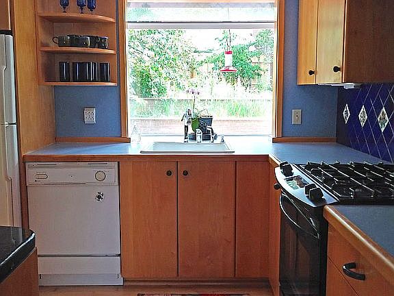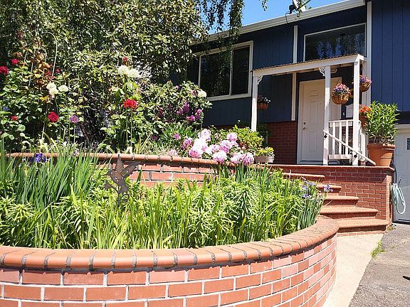 Move-in Ready! This well-maintained and beautifully appointed home in a quiet St. Johns neighborhood features a truly custom kitchen with solid-maple Euro-style cabinetry, a granite bake center and gas range. There are newly refinished hardwood floors in the kitchen and dining room. This split-level home includes 3 bedrooms plus a bonus room/office/non-conforming bedroom, 1 1/2 baths, and an attached garage. The front porch, half bath and laundry room were recently remodeled, and there is new carpeting in the downstairs bedrooms, as well as new paint, and energy efficient windows throughout. All appliances are included: refrigerator, gas range, gas fireplace, dishwasher, microwave, garbage disposal, washer and dryer. French doors in the dining room lead to a gorgeously landscaped back yard, perfect for entertaining. The fully fenced back yard includes a deck, brick patio, new fencing on two sides, and brick-terraced flower beds that burst with blossoms. The upper terrace includes a garden shed, a mature grape vine, cherry trees and a pear tree, with raised planting beds for vegetables, blueberries, strawberries and more flowers. The large teak outdoor dining set and porch swing are included. The gas fireplace in the living room heats the entire upstairs shared living space. Energy efficient Envi E-Heat convection wall units are installed in three of the four bedrooms. This home’s Energy Score is 6. For the report, visit: https://rpt.greenbuildingregistry.com/hes/OR10190244.pdf