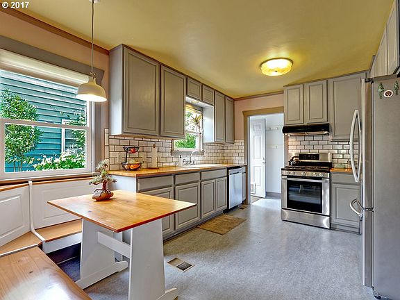 mpressive Bungalow that's completely dialed-in & waiting for you.Two bedrooms + den on the main with a true Master Suite up! Dream come true Kitchen w/maple counters, subway tile,updated cabinets, SS appl, + a cool eating area/nook.Orig. Old-Growth Doug Fir floors. Tons of thermal pane windows - so let the sun in. Maybe U could finish the high ceiling basement to build your future equity. It's all good here:)