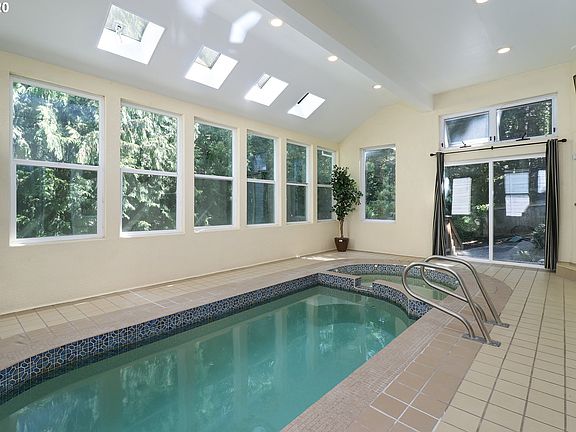 Dream Home in Forest Heights with INDOOR POOL, SPA, and SAUNA. 4 bed, 3 bath, 4 fireplace - perfect quarantine hideaway. Electronic air purifier. Top floor is a romantic private suite with sitting area, balcony, walk-in. All extra bedrooms are downstairs with pool, spa, and sauna plus bonus rooms (gym area?) kitchenette and more. Potential dual living. Two blocks from restaurant, cafe! Click Vtour link for 3D home tour. [Home Energy Score = 6. HES Report at https://rpt.greenbuildingregistry.com/hes/OR10186109]