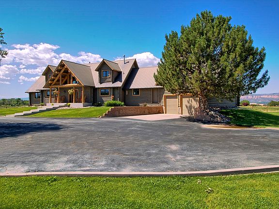 The incredible feel of a contemporary mountain log home awaits you on a picturesque 6-acre setting in the premier North area of Grand Junction, among some of the most sought-after real estate in Western Colorado. Framed structure, chinked log siding, metal roof, dormer windows, vaulted ceilings, and elevated panoramic views all add to the ambiance of this home. 5 Bd, 5 Bth, +office, multiple living areas, floor-to-ceiling stone fireplace, and huge deck for entertaining. Hardwood floors, stainless steel appliances, and granite countertops are just a few upgrades you will see. The master suite has an enormous walk-in closet, center island dressers, and a hot tub out it's back door. If you have bikes or horses and want a place to ride them this is a dream come true, the trails of the western Colorado desert are right up the road. Plenty of room for a shop, garden, greenhouse or whatever your heart desires. This incredible property offers true end-of-the-road privacy.
