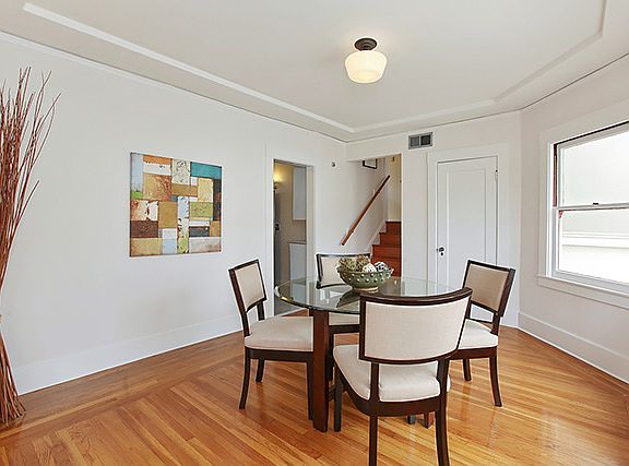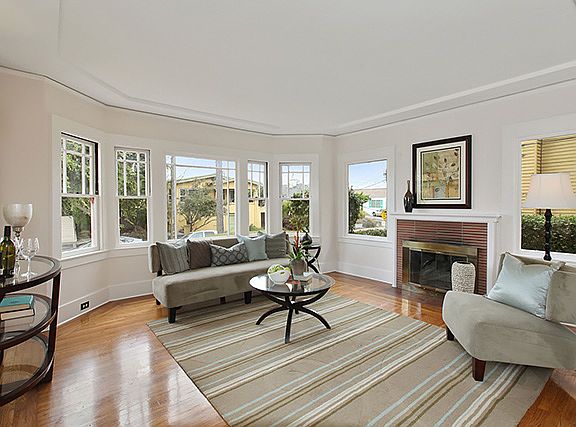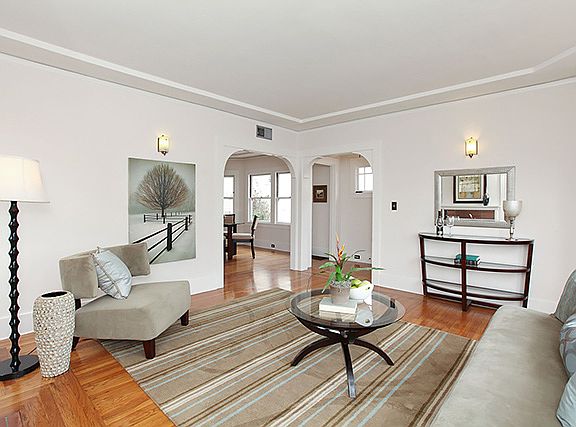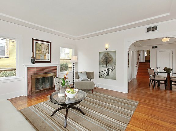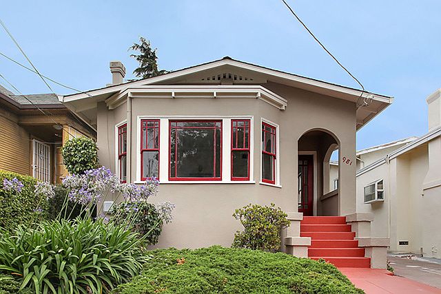 Santa Fe bungalow 2+BR/1BA. Fabulous 1920s details, unusual split-level floor plan. HWF, FDR, garage. Extra space in basement level.