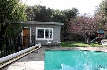 Beautiful Sleepy Hollow remodeled home on a gorgeous flat half+ acre lot. 3 bedrooms in the main house plus a large private detached guest house w/office. Kitchen with Italian marble counters, limestone floors & breakfast area. Formal dining room, fireplace, hardwood floors & many extras inc. air cond. The grounds are fully fenced with front & rear lawns, pool with flagstone decking, outdoor patio & brick fireplace & a wonderful garden area.