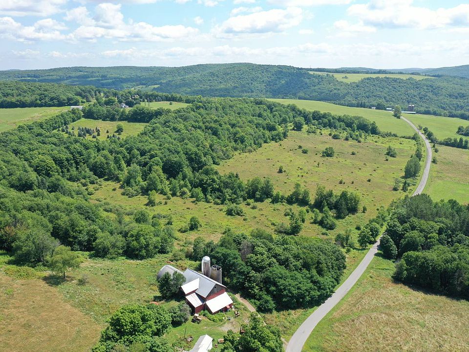 170+/- Acre former Dairy Farm on a quiet road, with lots of road frontage. Hay fields, pasture, two ponds with streams, woodlots, stone walls, and hedgerows. Wonderful views enhance this private setting. The property could be converted to beef and/or a horse operation. Renovate the house for yourself or for a caretaker/rental, or build a new home on the hill and enjoy the spectacular views. For the outdoors-man, this is a killer spot for mature whitetails and turkeys, with huge timber everywhere, and the hay/clover fields on this property are a primary food source. Multiple crisscrossing deer trails with numerous possible stand locations. Under a 3 hour drive to NYC.
