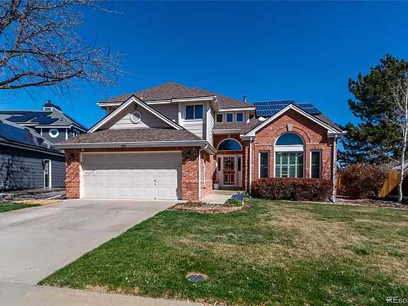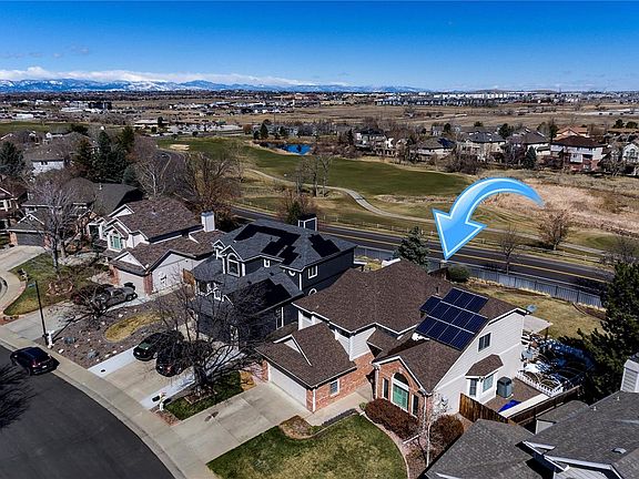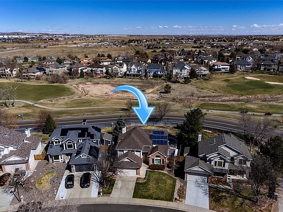 Spacious 4 bedroom, 4 bathroom two story home located in the Hunters Glenn subdivision. The property is located on a cul-de-sac street. Mature front and backyard landscaping. The main floor plan offers a living room, formal dining room, kitchen, family room, half bath, laundry room and main floor bedroom that could be used as a main floor study as well. The upper level has a master bedroom with a five piece master bathroom and walk-in closet, two additional bedrooms that share a full bathroom. The basement is fully finished with a half bathroom, wet bar, storage area and crawl space. Enjoy the large backyard with mountain and golf course views, redwood deck, covered patio and garden areas. The backyard is across the street from #18 and #10 golf holes of the Thorncreek golf course. Close to schools, parks, shopping, restaurants and health care. Easy access to major streets and I-25.