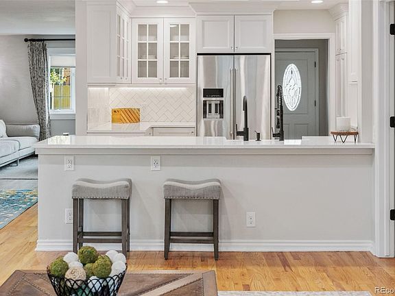 Stunning home in sought-after Southglenn community! Welcome to this beautifully updated tri-level residence, ideal for entertaining family and friends. With 3 bedrooms and 3 bathrooms, this immaculate home features spacious, open living areas that are flooded with natural light. Step inside to discover gorgeous hardwood floors, large windows, and skylights that enhance the bright ambiance. Custom built-ins and stylish window treatments add elegance throughout. The kitchen, professionally remodeled in 2017, boasts white soft-close cabinets (some with glass fronts), quartz countertops, a chic chevron tile backsplash, a farmhouse sink, and top-of-the-line KitchenAid appliances. The expansive family room includes a gas fireplace and custom built-ins, overlooking the inviting pool. Light-filled living and dining areas create the perfect setting for gatherings. The primary suite is a true retreat, featuring a private staircase, two walk-in closets, a cozy fireplace, built-ins, and a luxurious 5-piece bath. The upper level also includes two additional bedrooms—one with a large walk-in closet—and a beautifully updated 3/4 bath, along with convenient laundry facilities. The lower level offers even more living space, with another family room (complete with a gas fireplace and built-ins), a slider leading to the pool, generous storage closets, a 3/4 updated bath, and a versatile bonus room with a built-in desk. Outside, enjoy a fully fenced yard with an automatic solar-powered gate, Rachio app-controlled sprinklers, a sunshade, pergola, and custom landscaping. The backyard oasis features a 40x16 pool with a new pump (2021), cover (2020), crawler (2017), and a safety gate on the upper deck. With no HOA and a prime location within walking distance to schools and parks, plus easy access to C-470 and I-25, this home is a must-see! Don’t miss your chance to own this HGTV-worthy gem in Southglenn!