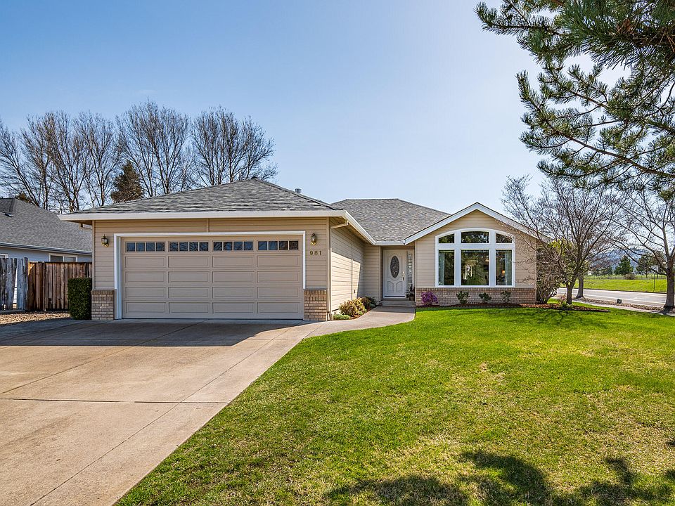 Location, location, location! This impeccably maintained home enjoys a setting in Larson Creek Estates amongst nearby golf clubs, enjoying easy access to shopping, medical, schools, & quick access to I-5! The spacious & functional floor plan provides a family room with vaulted ceilings and tall windows, formal dining area, kitchen, & an additional living room with a gas fireplace & sliding glass door to the meticulous backyard. The bedroom wing includes two spacious guest bedrooms & a full bath. Privately situated at the rear of the home is the master bedroom w/sliding glass doors to the patio. The master has ample room for a sitting area & features a walk-in closet & large vanity. The backyard is maturely landscaped with lush lawn, raised beds, & a detached shed. In addition to the aesthetically pleasing landscape, this large lot has more than enough space, & the gated gravel side yard can fit your RV, toys, equipment, & more! NEW ROOF & exterior paint in 2020!
