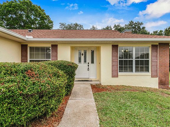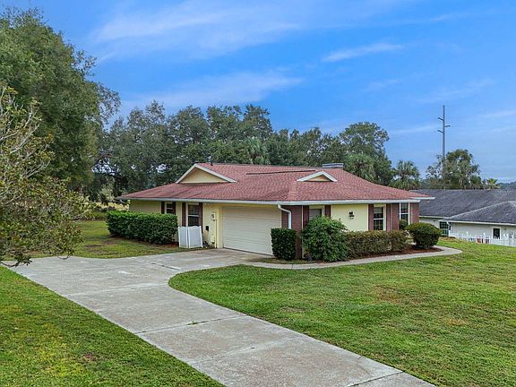 This house has been remodeled and updated. The kitchen and bathrooms were updated. The living room features a wood fireplace and opens to the kitchen. There is plenty of room across from the kitchen for a large dining area. A glass sliding door leads from the dining area to the back enclosed porch. The remodeled kitchen has stainless steel appliances, stone countertops, and a glass backsplash. The wood cabinets offer ample storage, including a built-in pantry. The living room, dining area, and kitchen include a surround sound system. Play your favorite music while you cook or entertain! There is a large bedroom at the front of the house, close to the living quarters. An indoor laundry room includes a soak tub. There is another guest bedroom. The master bedroom and bath have been remodeled and feature a larger walk-in closet. The garage has space for two cars, plus extra room for a workbench and storage. The property abuts meadows at the back. There is ample room to add a pool. The meadows and yard are separated by a fence that belongs to the owners of the meadows. Donkeys, cows, and horses often appear in your backyard view. It is beautiful. Connell Lake Estate is a non-deed-restricted subdivision, so fences, trailers, and RVs are allowed. The 48-mile bike trail is just across CR 41, at the official entrance to Connell Lake Estates (also known as Lakeside). Golf, medical offices, grocery stores, and schools are all within a 10-minute drive. This is one of a kind.