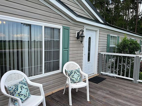 If you are looking for peaceful, private and beautiful, this is the property for you. Located in a rural setting, this spacious double-wide mobile home is on 5 acres nestled on three sides by mature pine trees and a beautiful cultivated field that is your front view. Plenty of room for the whole family, this home features a large kitchen with a sit down island bar and dining area. Two large spacious living areas, and mater suite with double vanities, separate tub and walk-in shower. This home has a split floor plan layout with the family room, 3 bedrooms, bathroom and utility room are separated from the master suite. Outside special features include a small pond , a large deck across the entire back of the home for entertainment and a charming storage barn with lean-to on both sides. Conventional Financing is available with a local lender with only 5% down and a 640 credit score. Call today to schedule your showing.