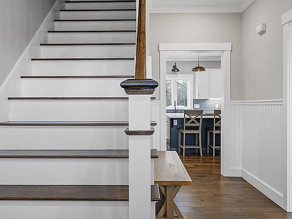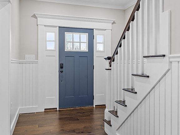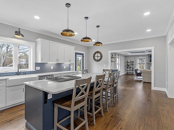 Loads of upgrades in this builder's own 2-year young custom Colonial set back from the road. The heart of the home features a large center island kitchen with generously sized walk-in pantry & stainless appliances. The oversized living room boasts coffered ceilings, wet bar, gas fireplace and loads of natural light. Upstairs, you'll find the primary suite, complete with two walk-in closets & spa-like bathroom featuring a generous tile shower with multiple heads & dual sink vanities. Both upstairs bathrooms have electric radiant mat heating for comfort during the chillier months. 3 sun-filled bedrooms and 2nd floor laundry round out the upstairs. In the lower level, you'll find a 3rd full bath, mudroom area for ease of use off the garage, and all flooring in finished space with electric radiant mat. The sprawling backyard with lush lawn offers ample play space while a generous deck offers plenty of space for outdoor entertaining.