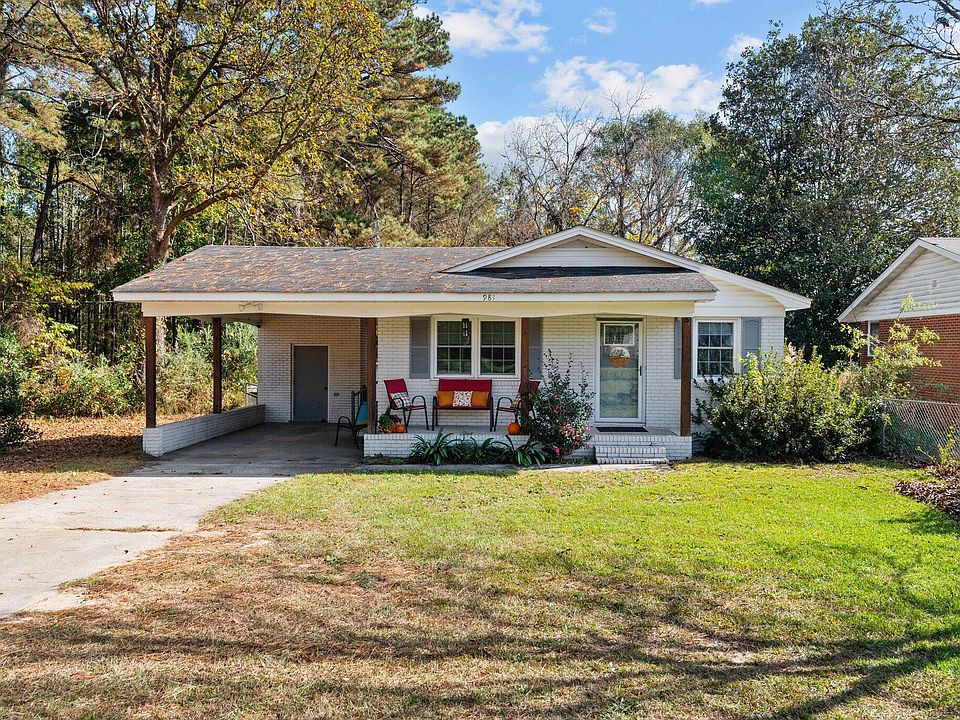Welcome to 981 Shawtown Road—where charm meets modern elegance in this beautifully updated 3-bedroom, 1-bath brick, ranch home. Thoughtfully renovated by past owners in ~2021/2022, this home seamlessly blends contemporary style with cozy comfort. Step into the heart of the home: a striking kitchen featuring granite countertops, a spacious island with built-in seating, and a statement-making black range hood above the stainless steel electric range. The kitchen is complete with a sleek stainless steel dishwasher and sink, enhanced by black fixtures throughout. Wood floors flow gracefully through every main living space, adding warmth and continuity to the space. Each of the three bedrooms and the inviting living room have ceiling fans installed for year-round comfort. The windows throughout the house flood each room with abundant natural light, enhancing the warm atmosphere of the space, and are equipped with new blinds for extra privacy when desired. The dining space exudes modern elegance, perfect for intimate and festive gatherings. Outside, you'll find a partially fenced-in backyard offering privacy and a serene setting to enjoy nature. The property boasts a carport accommodating one car and a long driveway for additional parking. There is also a convenient shed for ample outdoor equipment storage and a laundry room thoughtfully located off the carport. Relax on the welcoming front porch and enjoy the day at your new home. With a NEW HVAC system installed in 2024, 981 Shawtown Road is move-in ready and awaiting its next owner! Welcome home!