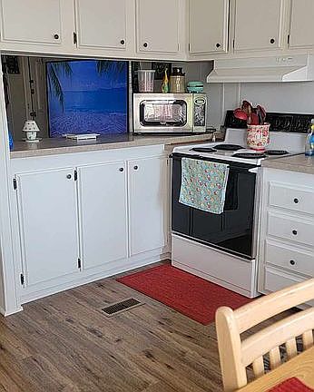 This Two Bedroom Two Bath home is settled in a quiet waterfront community with access to Lake Clinch which has great sunsets and good fishing! This is a 56x14 singlewide mobile home with an updated kitchen including a dishwasher and disposal, newer flooring throughout, freshly remodeled bathrooms, and a HUGE storage shed with laundry facilities, sink, and a ton of shelving. The open concept that makes the home feel so spacious and tons of bright natural light is so inviting. The Master Bedroom is very spacious along with two closets. This gorgeous home backs up to an orange grove for added privacy with a large covered carport. Amenities include, heated pool and spa, floating boat dock, boat ramp, clubhouse with activities, BBQ pavilion, shuffleboard courts. Pets, motorcycles and golf carts are also allowed in this great community. Affordable lot rent. Great home for full time use or your winter getaway!