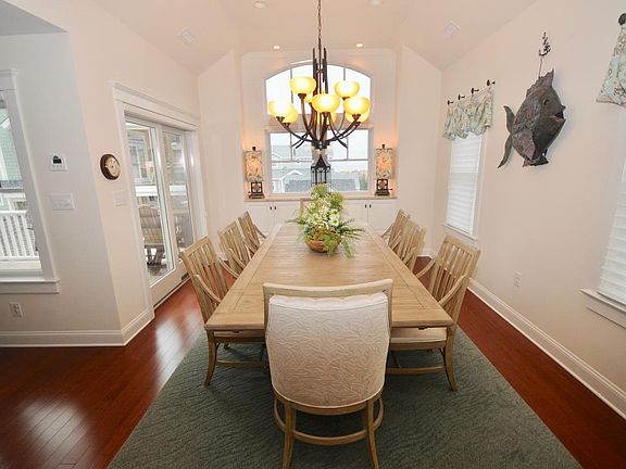 You will feel right at home from the moment you arrive at 9810 First Avenue. This beach block beauty was artistically designed by Blaine Steinman and beautifully crafted by Joseph G Popper, Jr. The main living level features a spacious open floor plan, all with good ocean views. The living room, with gas fireplace, opens onto a deck with custom furnishings where you can enjoy the ocean and pool views. Adjacent is the large dining area and additional counter seating around the well designed kitchen which has upscale appliances and separate under counter beverage refrigerator. The spacious master suite and powder room complete the second floor. The first floor features a cozy family room with wet bar, under counter Sub Zero refrigerator and ice maker, and fireplace and, along with 2 bedrooms and a bath, can be closed off from the rest of the home to create a family sanctuary. One bedroom with a queen size bed connects via a Jack n Jill bathroom to a bedroom with 2 twin size beds. In the west end of the home there are two other bedrooms, both with a queen bed, plus a beautifully tiled bath, a powder room and a laundry room conveniently located near the outside shower. There is enough outdoor space to suit all preferences. There is a private deck off one of the first floor bedrooms, a gracious seating area near the entrance, a large deck overlooking the pool and ocean and the spectacular 3rd floor deck with fireplace and the beautiful Stone Harbor beach. The exquisite pool features a sunning shelf and the fully equipped cabana even has an outdoor TV. The lush landscaping is easily maintained with the aid of an irrigation system in the beds, flower boxes and patio planters. Style, comfort, convenience and understated elegance make this the perfect family home just 2 blocks from popular 96th Street and only steps to the beach. See Associated Docs for Survey & Elevation.