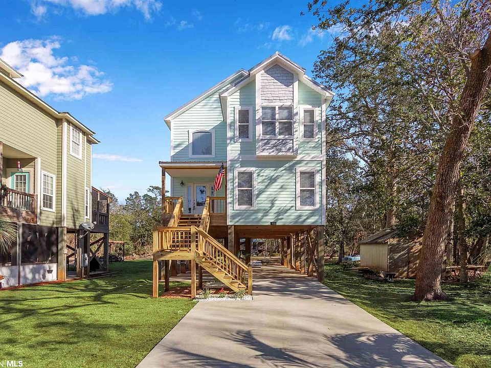 Welcome to Coastal Living! Adorable raised cottage, completely remodeled inside and out. Located in Sunset Shores subdivision which offers water access and a boat ramp, just a short walk away.2nd tier home with great views of the Bon Secour Bay. Beautiful remote controlled electric fireplace built in to living room wall. Master suite on the first floor and another master on 2nd level with additional 2 large bedrooms with a full bath along w/ an open flexible loft area. Tile throughout Living, Kitchen, & Bathrooms with luxury vinyl in all bedrooms. Custom tile showers, brand new appliances throughout. Enjoy your morning coffee on the back porch!