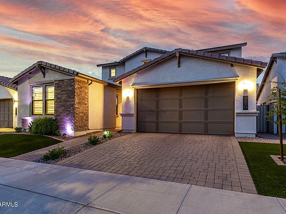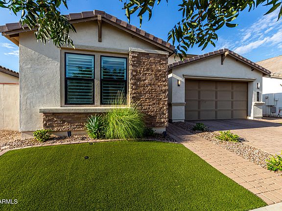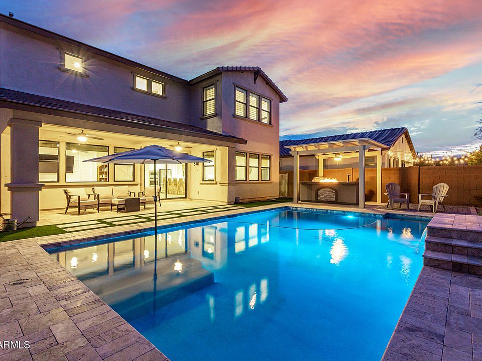 Welcome to your private backyard paradise! Nestled in Eastmark, this stunning 4-bed, 3.5-bath home with loft is an entertainer's dream. The resort-style backyard features a sparkling pool oasis surrounded by new artificial turf and pavers, a shaded BBQ area with built-in fire feature, and a tap cooler—perfect for unforgettable gatherings. Inside, enjoy elegant finishes, fresh paint, and seamless indoor-outdoor flow with surround sound and an electric fireplace. A versatile casita-style suite offers privacy for guests or multi-gen living. This is the ultimate blend of luxury, comfort, and outdoor entertainment! The exterior of the home has permanent Jellyfish lighting installed for all of your favorite holidays!! The walk-in pantry & white shaker cabinetry ensure ample storage space. There is a powder room downstairs! One secondary bedroom downstairs with its own bathroom, perfect for the guests. For added functionality, you have a versatile den downstairs & a cozy loft upstairs. Enter the main bedroom to find an ensuite with dual sinks, a sit-down shower, & a walk-in closet. One secondary bedroom with access to the Jack & Jill bathroom. Beyond the interiors, the backyard oasis holds its own appeal! Designed for ultimate relaxation and entertainment with a covered patio, well-laid travertine & pavers, and a built-in BBQ grill under the pergola. PLUS! Eastmark provides an array of community amenities, including numerous parks, walking paths, a community pool, and a recreation center for endless opportunities to relax and connect. With easy access to three major highways - 101, 202, & the 60 - commuting, shopping, dining, and entertainment are all just minutes away. What's not to like? See it! Love it! Live it!