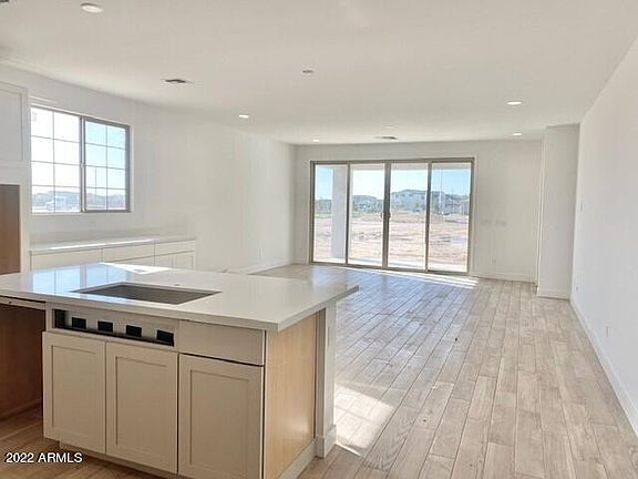 This beautiful home sits on a rare, oversized lot in Eastmark; 9,199 sq ft! Large 4-panel sliding glass doors in the great room that will overlook your spacious backyard, a second gate and garage service door were added for outdoor convenience. Lovely white shaker cabinets with black hardware, and quartz kitchen countertops to style your kitchen. A built-in 36'' stainless steel gas range wall oven & microwave, and added dining room cabinet extension add the gourmet touch to this kitchen. Upgraded wood plank tile floors in all main living areas including the master bedroom and upgraded carpet in the secondary bedrooms. The owner's suite features a walk-in shower and added recessed lighting and plumbing upgrades throughout. This home has too many features to list.