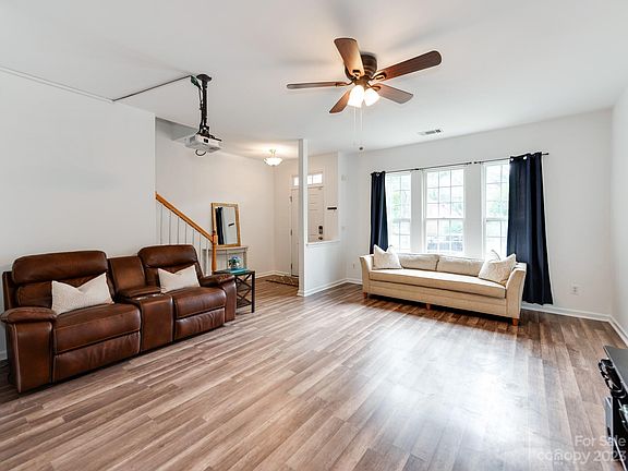 Welcome home to this lovely 3 story townhome in the walkable Ayrsley neighborhood. On the base level off the main entry you will find a large bonus living space with upgraded laminate wood floors that grants access to the 2-car garage. Two large closets & a half bath complete the space. Upstairs, the primary living area is flooded with natural light & leads to a well-appointed kitchen with painted white cabinets, granite counters, neutral backsplash & a well sized pantry. The kitchen opens to an informal dining space plus a cozy den with fireplace. A half bath as well as a back deck off the den complete the floor. On the third floor you will find the oversized primary suite with two walk-in closets & an ensuite bathroom featuring double sinks, a soaking tub & separate shower. Two guest bedrooms with nicely sized closets, a guest bathroom with shower/tub combo & laundry closet complete the top floor. Located minutes to shopping, dining and easy highway access, this home has it all!
