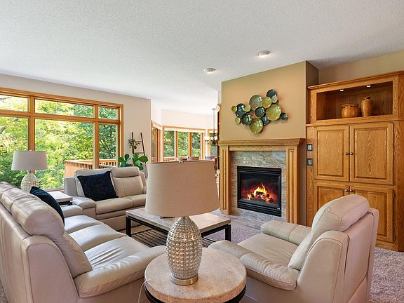 This beautiful custom built rambler overlooks Rush Creek with a breathtaking and serene back yard. It has a fire pit for those cozy gatherings. You are welcomed into a large foyer that is open to the great room & a wall of windows taking in the picturesque views. The great room features a gas fireplace with built-ins and is open to the formal dining room. The kitchen is a chef’s delight with tons of custom cabinetry, built-in ovens, gas cooktop, huge center island & granite countertops. There is a large informal dining area surrounded by windows that also walks out to the deck. The primary suite features a walk-in closet & a private bath with a jetted tub, separate shower & double sinks. There is a 2nd bedroom & bath also on main level. The main floor laundry/mud room is a dream. The lower level features in-floor heat & a spacious great room with a 2nd fireplace & walkout to a huge patio area. Two additional bedrooms & a hobby room complete this level. This home is a gem!