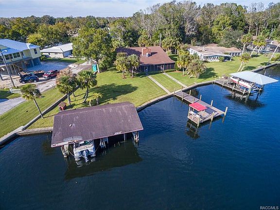 FANTASTIC RIVER FRONT PROPERTYflooded in hurricane& has been gutted down to studs. No appliances or HVAC, but the shell of a wonderful old home with amazing views.The front acreage appears to be wet & woods giving total privacy to the property from the street.129 ft on the Blue Waters Of the Homosassa offers open view & big back yard with two docks.One is covered.County says it will only allow $38,000 worth of permitted repairs, so home either needs to be lifted or taken down. A plywood walk way has been put down, but please be careful.Huge porch across the back. Would be a great family retreat/fishing/get away, or build your Fla dream home.