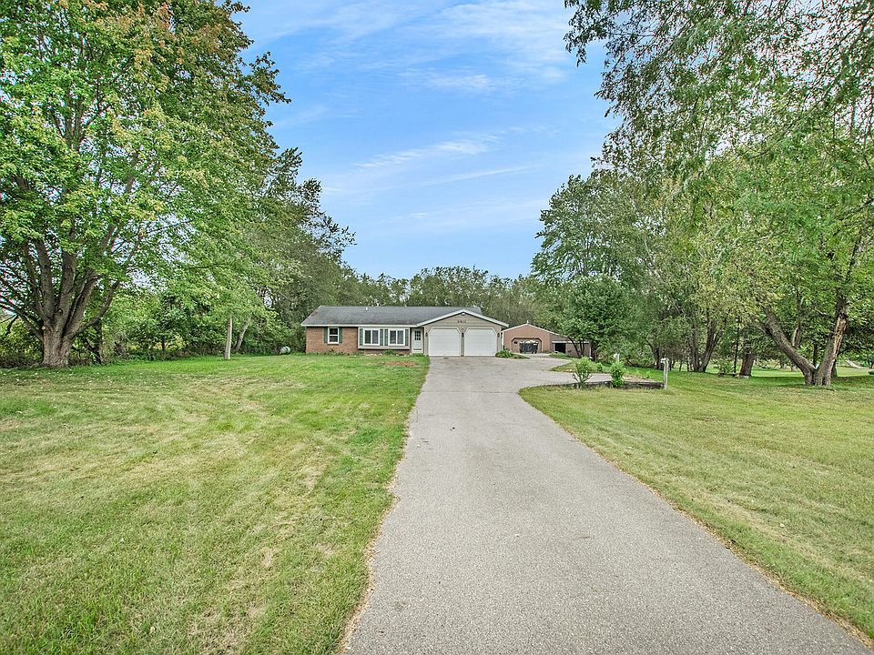 Come see this well appointed country home with just over two acres located well off the road. Some features include three bedrooms, one and one half baths, main floor laundry, and a fireplace. Other features include an updated kitchen with quartz counters, newer appliances, new flooring, and some lighting. The walkout basement is ready to be finished. Outside you will find a large pole barn with a separate attached stable previously used for horses and chickens.
