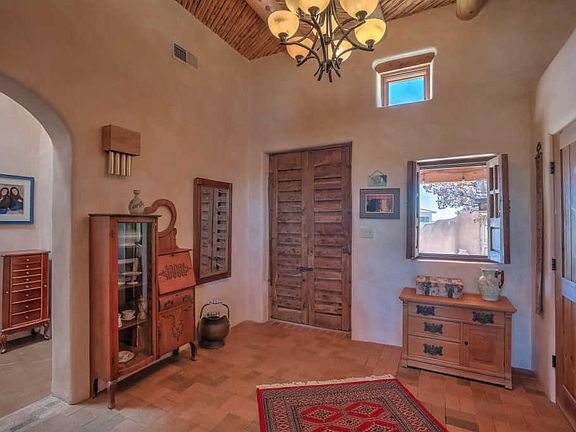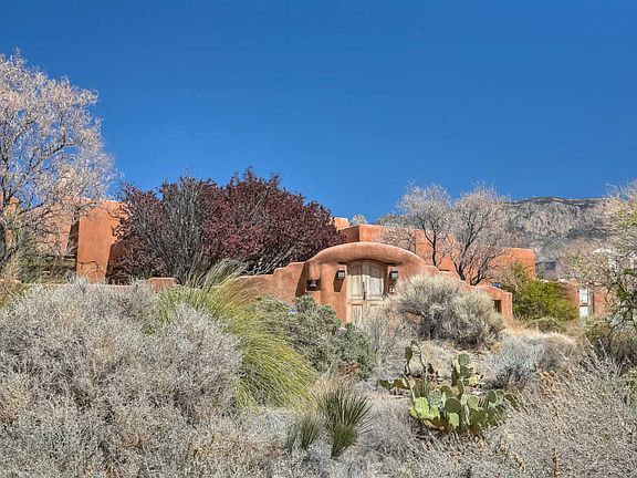 AMAZING rustic Santa Fe style, classic Pueblo home. 4 spacious bedrooms, flagstone floors with brick, paster finish walls. 3 kiva wood burning fireplaces. Master suite features spacious shower, tub, walk in closet to die for! Jetted tub in master, jack and jill bath for two guest rooms. This property backs to the buffalo fields, with unstoppable views of the Sandia mountains.Water features front and back. Large 3 car garage with 220 (for your electric car hookup), tons of storage. View deck from atop the garage area !