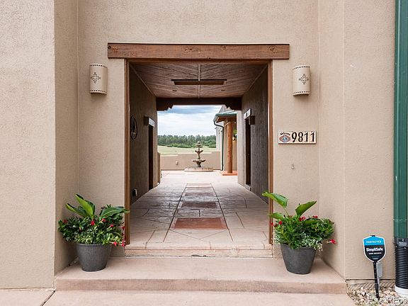 Don’t miss out on the opportunity to own this gorgeous custom Santa Fe style home on 38 acres of horse property! With tons of upgrades, this unparalleled Colorado retreat will take your breath away! As you enter the home you are drawn to the bright and open floor-plan with original wood beams. The entertainer’s kitchen features granite counters, hickory cabinets, stainless steel appliances, a double oven and oversized walk-in pantry. Retreat down a gorgeous breezeway which leads into a beautiful courtyard with swim spa and custom wood burning fireplace where you can enjoy a barbecue, gathering, or enjoy your morning cup of coffee. The very rare rooftop deck boasts 360-degree views of the Pikes Peak Mountain Range. A main floor primary bedroom suite has a large walk-in closet and 5 piece bath. Downstairs you will find a spacious, fully finished basement with a state-of-the-art gym, sauna, kitchenette, a second laundry room with a spa-like bathroom including 3 sinks and 2 showers. You will love the one-of-a-kind construction with Insulated Concrete Foundation and walls on both floors, perfect for energy efficiency. There is also geo-thermal heating with in-floor radiant heat that makes for cozy winter months. There is a back up generator for the home as well! There is a fully-equipped mother-in-law suite inside the garage which has a kitchen, living space, and bedroom. With 38 acres zoned for agricultural, you will love the amazing tax benefit! The sprawling land features a beautiful barn for your horses with new concrete and 6 new stalls and attached 15 ft by 36 ft loft with a 12ft by 6ft deck which can be used as a private work studio or storage space. There are 6 pastures, a 100ft by 75ft arena and unlimited potential! There are 3 loafing sheds on the horse property. This energy efficient and unique dream home is truly one of a kind!