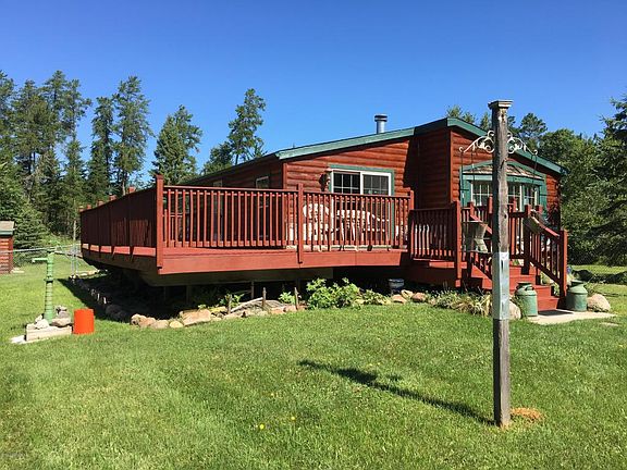 Very unique manufactured home has log siding & stone with large deck & beautifully setting. Home features 3 bedrooms, 2 baths, bay window in kitchen & gas fireplace. Home is warm & charming. Partially fenced yard & 2 log sided storage sheds (8x10 & 10x12). A must see, private property on 4.5 acres.