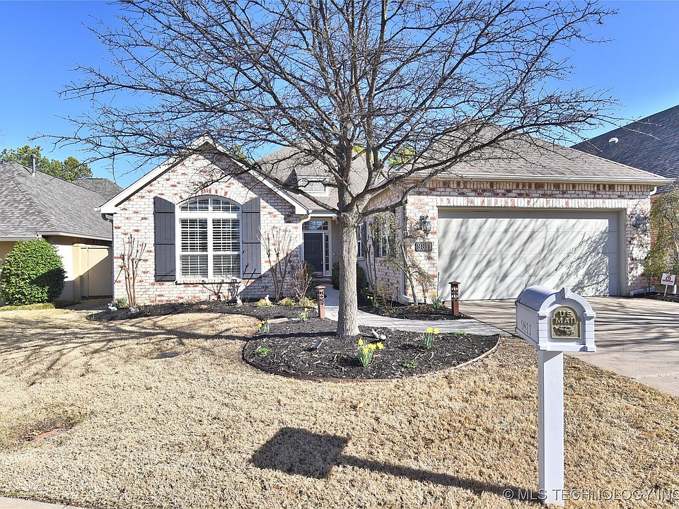 GATED Single level 2,897SF Patio Home in desirable Audubon Park within the Jenks School District. Two large master bedrooms, office/study with large safe room, and spacious dining areas. Beautiful hardwoods welcome you into this fabulous home with tall ceilings, neutral colors, new carpeting. Open concept with split bedroom floor plan. Chef's dream kitchen with Corian countertops and island, built-in appliances, butler's pantry c/b coffee bar and walk-in pantry. Living room with gas fireplace and built-ins. Formal dining room. Primary master has access to back deck, bath has separate sinks, soaking tub, separate shower, two walk-in closets. Refrigerator, washer, dryer stays. Deck with electric retractable awning overlooks a gardeners dream yard with sprinkler system. Storage area in garage with stairs up to attic for more storage. Located on cul-de-sac. Close proximity to Turnpike, expressways, shopping, restaurants, and parks.