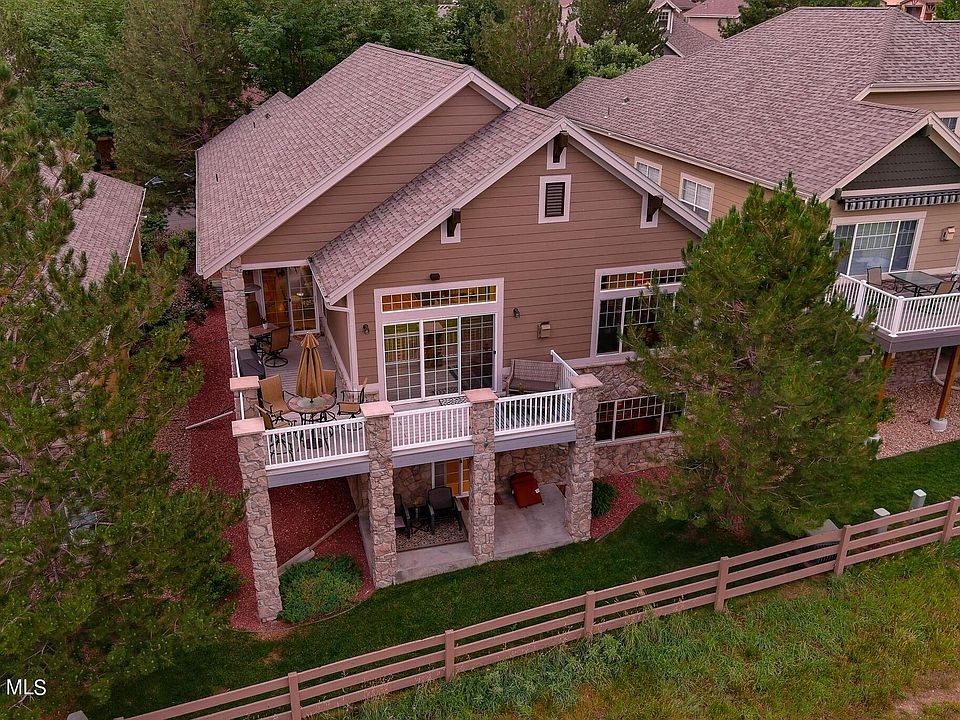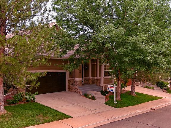Welcome to your beautiful ranch home with a finished walkout basement in the very desirable community, Star Canyon at Trailmark. This spacious home features vaulted ceilings on the main level, with recessed can lights throughout, surround sound in living room and speakers in every room and the outside deck, hickory floors, Forrister Cherry Chestnut cabinets, stained woodwork package and 6 panel doors , wood blinds, wood shutters on sliding glass door, granite countertops, custom tile backsplash and a large island for great entertaining. The main level includes a Master suite with ceiling fan, 5pc bath, walk in closet upgraded by California Closets. Main floor also includes an office study with glass French doors or can be a 4th bedroom next to a 3/4 bath, formal dining room, and gourmet island kitchen and pantry with built-in desk and spacious breakfast nook leading to a sliding glass door to an outdoor partially covered Trex deck. The main floor living room includes a fireplace, media alcove as well as custom built shelves and a wrought iron railing open staircase to the lower level. Main floor laundry room has lots of cabinets and a wash sink. The downstairs walkout includes 2 bedrooms, a full bathroom, a large entertainment/family room with surround sound, fireplace, media alcove, wet bar, an outside patio and a large unfinished storage room with an additional washer/dryer hookup. Homeowners enjoy the peace of mind of an outside maintenance free home to spend more time going to the park, playground, fishing hole, or going for a nice walk on the various trails within the Trailmark Community. This house backs to open space with views of the Hogback. The home is located very close to Chatfield State Park, Denver Botanical Gardens Chatfield Farms, Waterton Canyon, and Deer Creek Canyon. The outside of the house was painted in June 2022 and the entire inside was painted with neutral colors in early July. A new air conditioner and furnace was installed in May 2022. Newer roof, done in 2018. AC, Furnace, Roof, warranty is transferrable.
