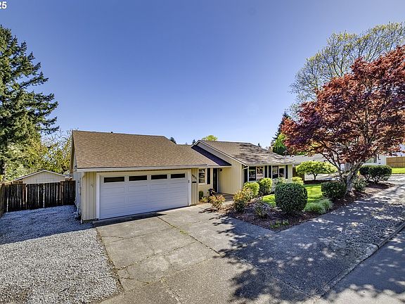 This updated one-level home in prime location has RV parking. The seamless flow from the kitchen to the dining & family rooms make everyday living & entertaining easy. Kitchen features slab granite countertops, eating bar, pantry & stainless free-standing refrigerator. Primary suite has large closet & updated w/free-standing tub, granite countertop, tiled floor & hot tub access. Main full bath updated w/large tiled shower. The landscaped & fenced backyard features large paver patio w/pergola, storage shed & raised beds. Garage has wall of custom built-in storage cabinets, workbench & separate laundry room w/washer & dryer, included. A/C. Nest thermostat. Windows & front door (2017). Auto sprinkler system. Gas hook-up for BBQ. Located next to Lafky Park & near schools, shopping, dining I-5, I-205 public transportation & more!