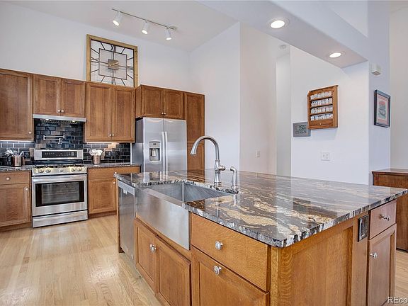 Amazing Ranch in Westridge Knolls! This 3 bedroom 3 bath home is full of custom updating*Kitchen boasts custom cabinetry of Quarter-sawn white oak, gas range with pot filler, custom backsplash, refrigerator (included), stainless appliances, gorgeous granite counters*Gas fireplace with blower creates a cozy Dining room*Newer sliding glass doors (with internal glass blinds) open to gorgeous trex deck with natural gas line for bbq*Raised garden beds with irrigation*Storage shed in back yard with electric outlet*Wood flooring throughout the main level*Vaulted ceiling in Primary bedroom*Updated Primary bath with frameless shower, custom cabinetry, and heated floor*Garage features extensive built-in cabinetry and is fully insulated, drywalled, and textured*Basement finish includes large rec area/second family room with space for a game table, wet bar equipped with wine cooler and heated floor*Convenient basement bedroom with large walk-in closet (11x6) and 3/4 bath*Huge unfinished space great for storage/exercise/workshop/hobbies*Highlands Ranch is home to four spectacular Rec centers as well as a brand new Senior center*Easy access to shopping*Quick access to C470, Santa Fe, and UC Hospital!