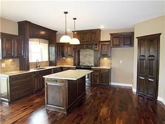 Kitchen knotty alder cabinets, decorative hood fan, island w/ brkfst bar, tile backsplash, walk-in pantry, granite tops & sink! Living rm has bay area w/ full length windows, stone fireplace. Wood endcaps & decorative carpet on stairs. All secondary br?s have private bath access. Mstr bath has w-in shower w/ dual heads, whirlpool & dual vanities