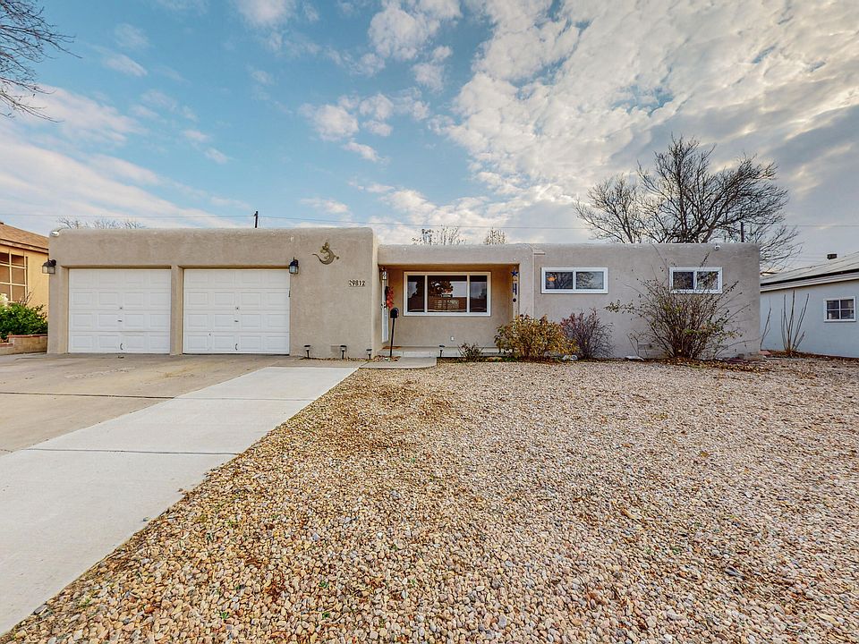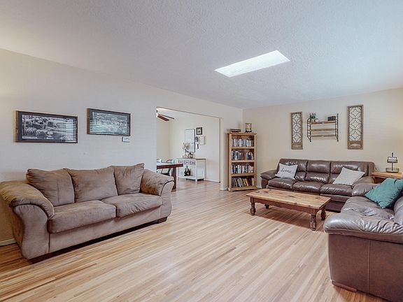 Eldorado High School district! Come preview this well-maintained NE heights home located in established & highly desirable neighborhood. This home has an inviting & open living room with skylights, wood/tile floors throughout, formal dining room, open kitchen with plenty of storage, and a bonus living room with a wood burning fireplace. No HOA! Low maintenance xeriscape front yard & spacious green backyard has a covered patio, new sprinklers, play set included, and large storage shed. Conveniently located near Sandia Mountain foothills and trails, & Montgomery Blvd for access to numerous restaurants, grocery stores, banks, shopping, healthcare, schools (CNM College), etc. You don't want to miss this one!