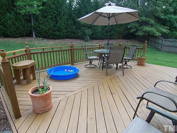 A rare find! 2 story home in convenient N. Raleigh location with lots of updates and great schools. You will love the updated maple flooring on the 1st floor and in a BR upstairs. The new kitchen cabinetry is accented by tasteful granite and backsplash. Don't miss the kitchen accent lighting. Other recent improvements are a roof, high efficiency electric water heater which also provides the heat(Hydroheat). VERY spacious 2 car garage is good for storage. HUGE! backyard is fenced w/ nice deck for relaxing.