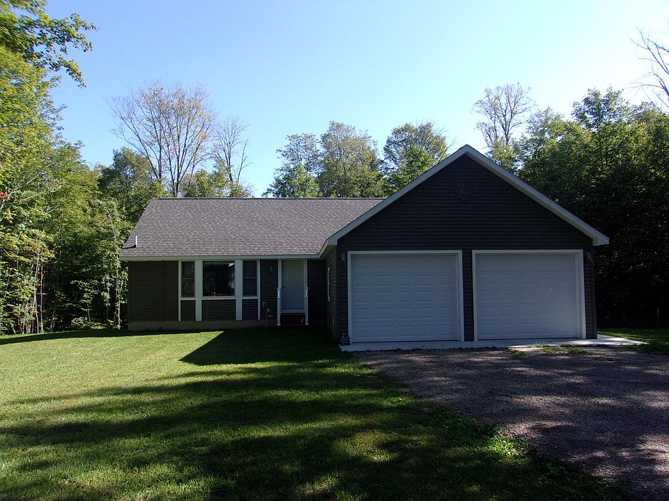 PRICE REDUCED-NEWER HOME out in the country on 25 wooded acres. 2 bedrooms, 2 full bathrooms, on a full basement with a 2 car attached garage. It has an additional 30x40 pole barn with guest quarters. Basement is plumbed for a 3rd bathroom and has an open slate to finish as you would like. Private setting, with new septic, natural gas, air condition and newer well.