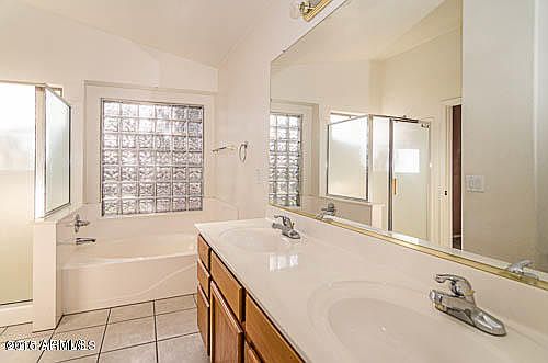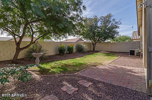 3 bedroom, 2 bath home features a spacious great room with vaulted ceilings and split floor plan, great kitchen with breakfast bar. Large Master suite features double door entry, dual sinks in master bathroom with separate garden tub and shower. Nice size backyard with grass and a covered patio. The North/South Exposure will help with the utility bills as well. Conveniently located with easy access to freeways, local shopping and Phx-Mesa Gateway airport. recently painted interior/exterior and installed porcelain tiles flooring throughout property.