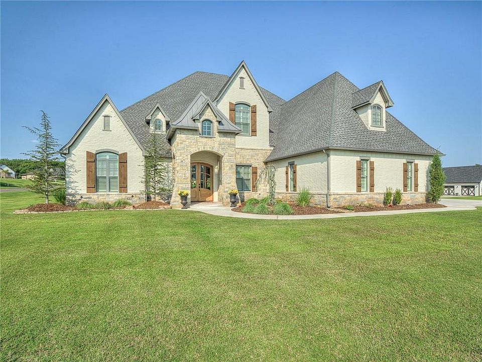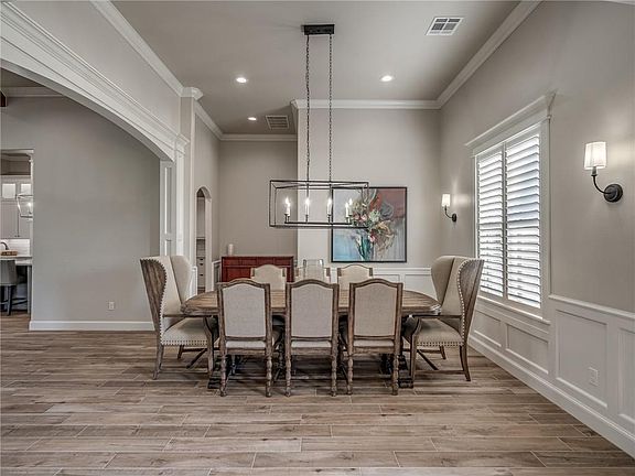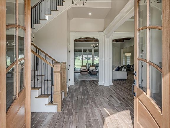 Presenting an exquisite custom-built luxury residence that embodies timeless beauty. Meticulously designed to seamlessly blend everyday comfort with an exceptional environment for indoor and outdoor entertaining. Every aspect of this home showcases attention to detail and an array of impressive upgrades. With high-end modern finishes, complete plantation shutters throughout, and automated shades adorning the custom sliding glass door in the living room, no expense has been spared. The residence features top-of-the-line zoned surround sound, ensuring a captivating audio experience both inside and outside. The generously sized kitchen boasts an oversized refrigerator, complementing the elegant crown molding and trim found throughout the home. A myriad of other exceptional features adds to the uniqueness of this property, guaranteeing an unparalleled living experience. Beyond its 5 bedrooms, 4½ bathrooms, and spacious 4-car garage, this home offers additional amenities such as an office, a gym, a bonus room, and an oversized storm shelter conveniently located off the pantry. Occupying a sprawling acre of land, this stunning residence is ideally situated in close proximity to Tinker AFB and a short drive from downtown. With its unrivaled charm and irresistible appeal, this is an opportunity not to be missed.