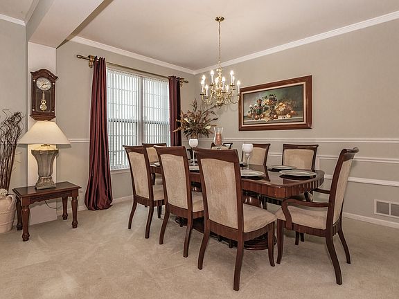 Lovely Ellsworth Model with Relaxing Front Porch, 3480 SQ Ft Above Grade 850 finished below! 2 Story Foyer & Family Room, Light Bright & Airy with Wall of Windows! Family Room also with Gas Start Gas Log Fireplace with Mantle! 1st floor & Second floor with speakers & surround sound! Huge Empty Wall current owner used for Projector TV that will stay with the home. As you see in the photo this is the perfect wall for a large Video! Hardwood Foyer and Kitchen area! Kitchen also has New Cooktop, Island and 42 Inch Oak Cabinets! Updated Backsplash, Above and Below cabinet Lighting! Large Pantry! 1st Floor Laundry Room! First Floor Den with Double Doors! Spacious Master Bedroom with Double Doors His & Hers Walk in closets! Sharp Master Bath with Jacuzzi tub & Separate Shower & His & Her Vanity & Sinks! 3 Additional Bedrooms upstairs 2 with Walk in Closets! 6 Panel White Doors! Oak Railings! Partial Finished Basement with Full Bath, Kitchenette & Rec Room! Possible inlaw arrangement! Crawl Space for Tons of Storage! Dual Zoned Heating & Air! Sliding Glass door to Patio area with Pergola! Newer Vinyl Siding & Hot Water Heater! Hook up for Generator! 3 Car Tandem Garage