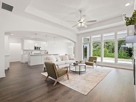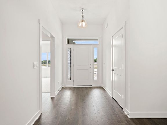 Open Houses Every Sunday 1-4pm will continue until November! Welcome to this brand-new exquisite home built by Star Homes by Delagrange and Richhart, completed in September 2023 and nestled in the sought-after high-end Orchard Hills Subdivision. This stunning residence boasts meticulous craftsmanship and thoughtful design at every turn.-As you approach, the exterior showcases cultured stone details, a generous front porch, and chic board and batten accents, offering a glimpse of the elegance within. Stepping inside, the nearly 2000 sq ft open floor plan welcomes you with a grand foyer, setting the tone for the sophistication that lies beyond. The heart of the home, the great room, is an awe-inspiring space. A wall adorned with four expansive 8 foot Anderson Windows bathes the room in natural light, accentuating the 10-foot ceilings and a striking 11-foot tray ceiling. A custom opulent gas tile fireplace with a wood mantle serves as a focal point, adding both warmth and luxury to the ambiance. The kitchen is a chef's dream, boasting custom cabinets, quartz countertops, a grandiose 10ft island, an oversized pantry, and top-of-the-line Frigidaire Gallery gas stove, dishwasher, and microwave (refrigerator not included). The thoughtful layout ensures both functionality and style, perfect for entertaining and culinary delights. The split floor plan offers privacy and comfort, featuring three spacious bedrooms and two elegant bathrooms. The primary bedroom oasis provides a serene retreat, complemented by a spa-like bathroom with a no-step custom tile shower, 10ft ceilings, transom window, and a generously sized closet. Beyond the interior, the backyard beckons with a private country setting, where you can enjoy the outdoors on the 345+sq ft. large covered/uncovered patio, ideal for al fresco dining or simply relaxing in the peaceful surroundings. This home embodies the perfect blend of modern sophistication and functional design, offering a luxurious lifestyle in a brand new community. Don't miss the opportunity to make this your dream home.