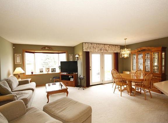 Looking for a bright and open design Here it is! This home offers 3 bdrms,2baths & 1400+ sq feet finished. Convenient main flr 1/2bath & laundry. Large kitchen w/lots of cabinets and snack bar,bowed window in LR,cement patio overlooking open green space.