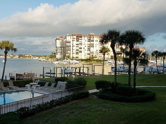 Sun and Fun! Come relax on your balcony while watching the dolphins and manatee play bay waters of Treasure Island. This well-equipped 2 bedroom 2 bath unit has fabulous water views and is centrally located to the white, sugar sand beaches of Treasure Island. The spacious bedrooms and quiet complex invite you to relax, swim a few laps in the heated pool and enjoy the sunshine that is Florida living! Wake each day to sparkling water views, take a dip in the heated pool, catch a fish dinner off of the fishing dock, and watch the sunset, while your toes are buried in the white sands of our fabulous beaches. This is the life! The master bedroom has a walk-in closet with an en-suite bathroom as well as a stackable washer and dryer inside the unit. A newer A/C unit and water heater as well as a decent sized storage closet for your pool toys of it can also fit a bike or a paddle board. Lots of parking for you and your guests as well as a pet friendly complex! The pool area overlooks the water and has a grilling area too. The complex is walking distance to the beach and close to shopping, dining and all that is the beach life. A short 30 minute drive to Tampa's international airport or go to visit the famous downtown St Petersburg and enjoy the fine arts museum or the Dali or dine along Beach Drive!