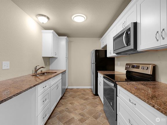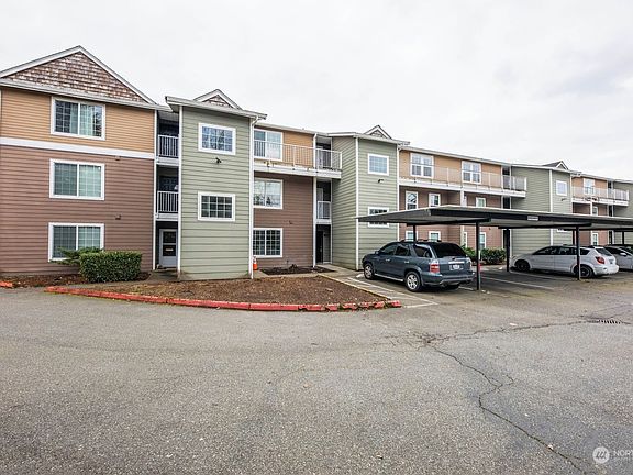 Lovely 1,057 sq ft Condo w/ 2 bedrooms & 2 full bathrooms. Remodeled 5 years prior, this place is nicely updated and turnkey. Each bedroom is “Primary Sized” including 2 full primary baths & large closets, and set on opposite sides of the unit. Lots of space to spread out with the large living room, laundry room & storage closets. Kitchen is spacious w/ stainless steel appliances, white cabinets, granite counters & pantry space. Back patio w/ storage. Grassy area for dogs. The unit has one designated carport & plenty of guest parking. HOA dues: Water, Sewer, Garbage & Ext Maintenance. Easy access to Boeing, public transit, shops, eateries, Alderwood Mall, I-5/405 freeways & quick drive to Bellevue/Seattle. Make sure to check this one out!