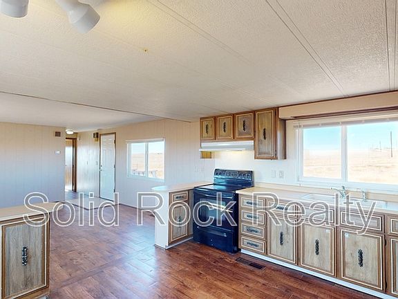 A very unique 3 bed/2 bath home SE of PEYTON (Calhan zip) on 20 acres. True country living with serene views, peace, and tranquility, yet only 15 minutes to Falcon Towne Center with all the city conveniences and only 25 minutes to Colorado Springs. Open floor plan w/ eat-in kitchen and large living room; LVP floors throughout and tons of natural light! Laundry hook-ups; built-ins for extra storage space; and plenty of outside parking around your own circle driveway. 28 x 32 Red barn: use as a garage, workshop, or storage space. Or it could accommodate up to 3 horses (80% of the property is fenced for horses) and chickens! Water and wastewater usage are included in the rental price!