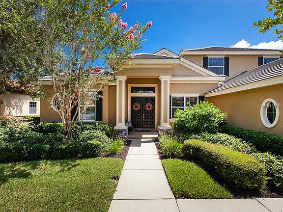 Welcome to this four bedroom plus den custom built home by Todd Johnston that is situated on a half acre private lot with private treed and preserve views. From the moment you enter you'll realize you've found your dream home. From the open family room, that flows into the kitchen, to the extended caged lanai with inground pool, cabana bath and large covered entertaining areas, this is the perfect home to entertain family and friends. Some of the special features include: newer engineer hardwood floors, welcoming foyer with dramatic columns opening to the formal living room with wet bar and sliding glass doors to the pool area. The spacious family room with built-in entertainment center and wall of sliding glass doors opening to the pool area. The gourmet kitchen offers 42" cabinets, center island, granite counter tops, huge walk-in pantry and separate casual dinette. First floor executive den with entire wall of custom bookcases, desk and French doors. Oversized master suite with sitting area, huge walk-in closet and luxurious private bath. The second floor features a large bonus room with upgraded berber carpet, built-in entertainment media center and two additional bedrooms and full bath. Huge laundry room, two zoned heating cooling systems, oversized 3 car garage, extensive landscaping on all sides, built-in speakers, dog fenced area in the backyard, built-in speakers, crown molding, cul-de-sac location extensive landscaping, low HOA fees and no CDD's! Enjoy your tour of this better than new home!